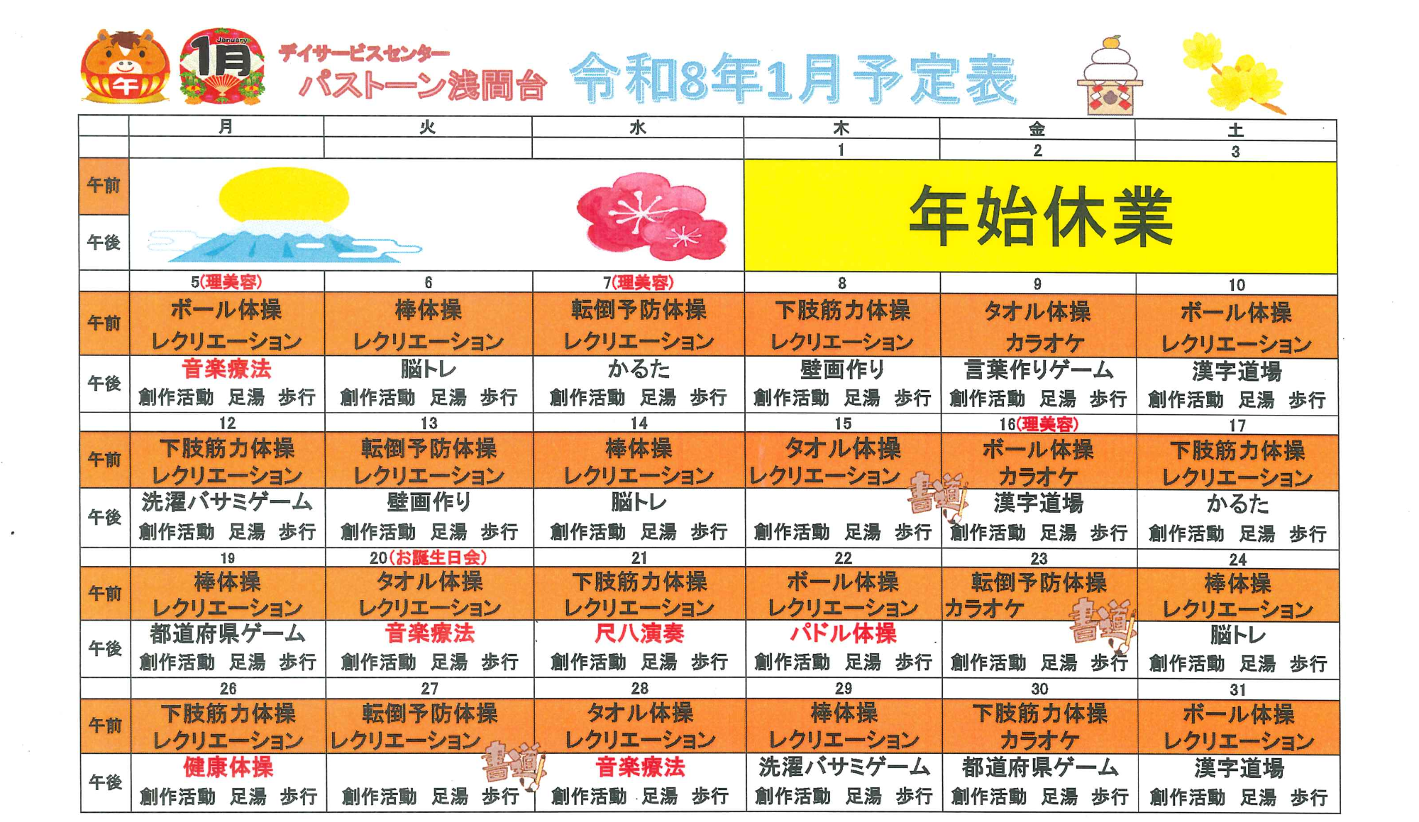 2026.1.7 デイサービスの1月の予定表および曜日毎の利用状況を追加しました